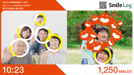 ■笑顔検知一般社団法人One Smile Foundationが開発した、個人を特定せず、笑顔を検知するAI技術を搭載したツール『スマイラル』を活用。ステージに常設されたリモートカメラ2台で、コンテンツをお楽しみいただいている来館者の自然な笑顔を検知しました。