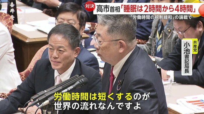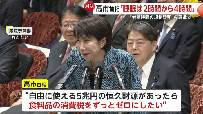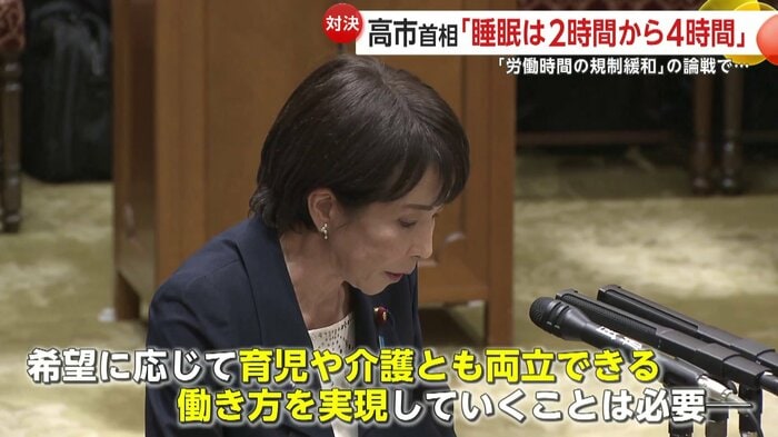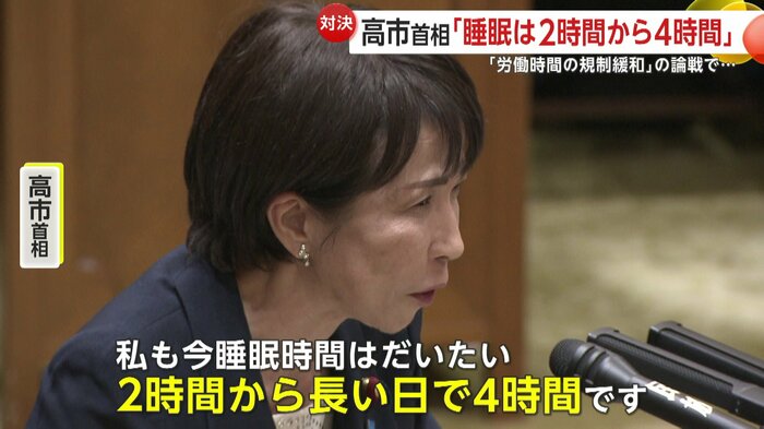 これに対し、高市首相は「希望に応じて、育児や介護とも両立できる働き方を実現していくことは必要」とした上で、現在の驚きの睡眠時間を告白した。
