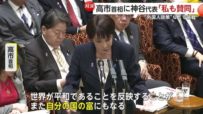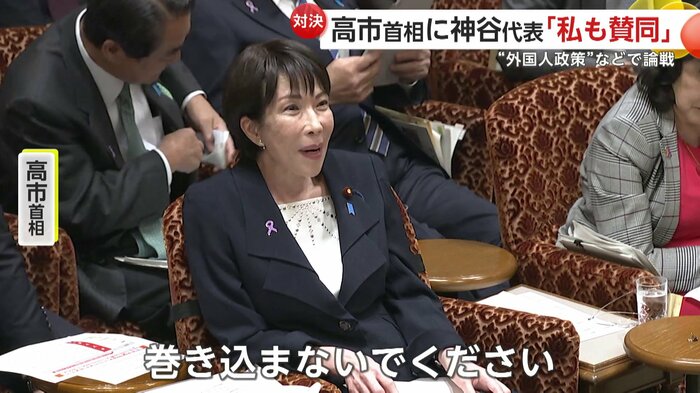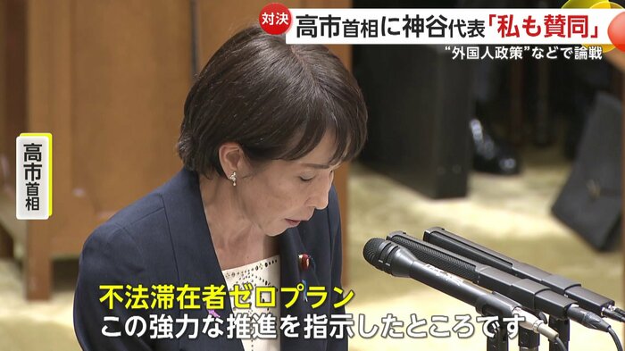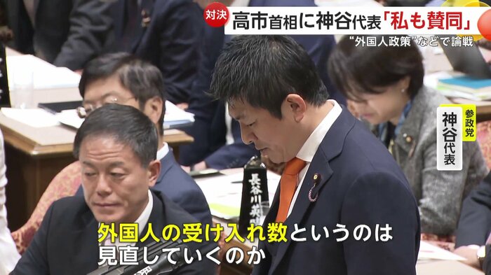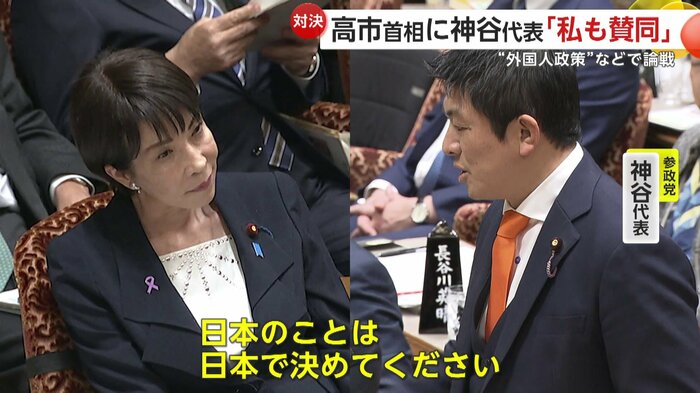 高市首相は「日本人ファースト」を政策の中心に掲げている参政党・神谷代表との初の本格論戦に臨んだ。