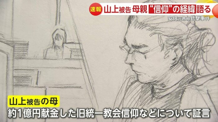 安倍元首相銃撃事件の裁判が行われ、山上被告の母親が証言台に立った。
