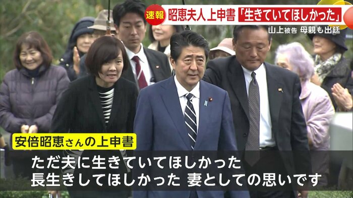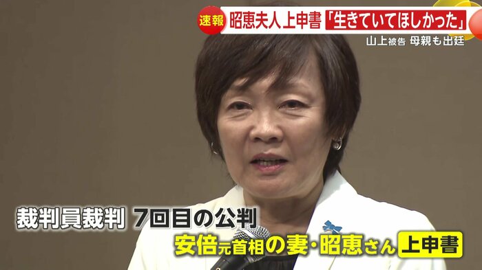 10月から始まった裁判員裁判は13日、7回目の公判が開かれ、安倍元首相の妻・昭恵さんの「上申書」が読み上げられた。
