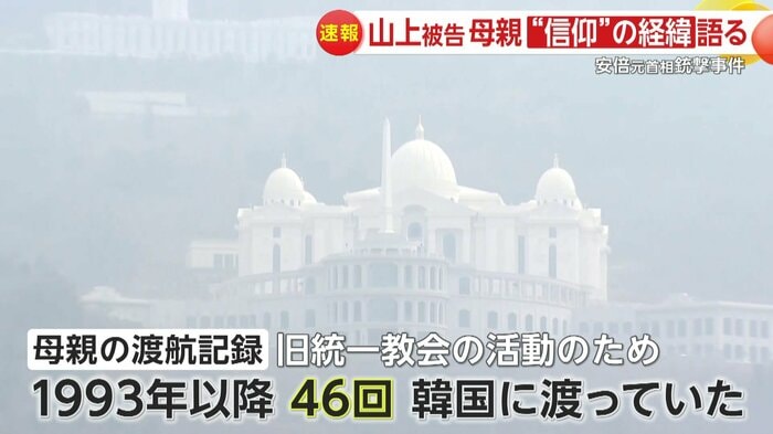 渡航記録からは、母親が旧統一教会の活動のために1993年以降、46回韓国に渡っていたことも明かされた。