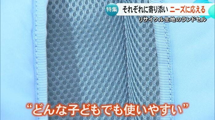 リサイクル生地で作られ、軽くて機能的なランドセルが注目されている。体を締め付けないことから、障害がある子どもにも喜ばれている。開発者や利用者に話を聞いた。