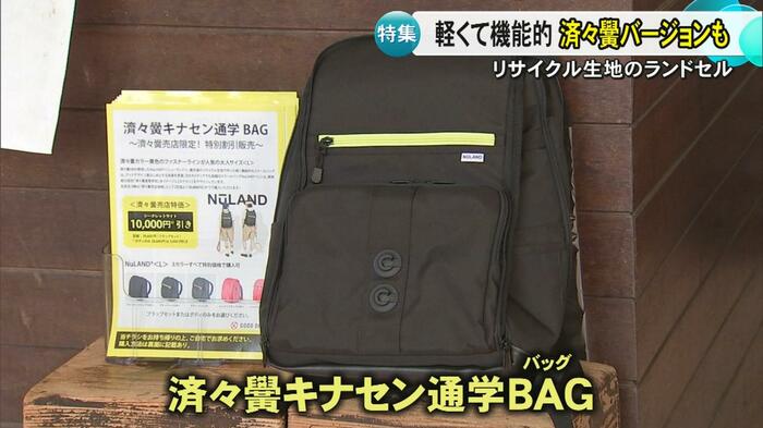 ブランド名は『ニューランド』。リサイクル生地で作った布製のランドセルとして、2021年に登場し、SNSなどで話題となった。重さは、892グラム。東京に本社を置く『RANAOS』が販売していて、2025年5月に初めて熊本市で展示会を開いた。