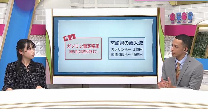 宮崎県の場合、48億円の歳入減が見込まれており、暫定税率廃止後の財源確保に向けた議論が引き続き重要となる。