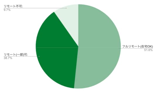 フルリモートが51.6%、リモート一部可が38.7%で、合わせて90.3%がリモート対応可能です。プレスリリース作成やメディア対応、IR資料の作成など、オンラインツールで完結できる業務が多いことが背景にあります。ただし、記者会見や株主総会、経営層との打ち合わせなど、対面が必要な場面も残っているため、リモート一部可の割合も高めです。リモート不可は9.7%と少なく、場所にとらわれず専門性を発揮できる働きやすい環境が整っているといえるでしょう。