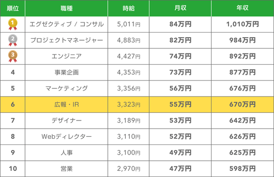 平均年収670万円(職種別年収ランキングトップ10中、6位)