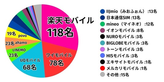 ■利用キャリアは「楽天モバイル」が最も多く、「ワイモバイル」「UQモバイル」が続く
