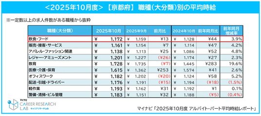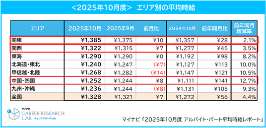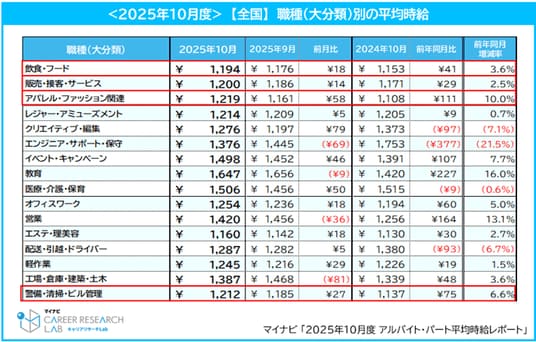 『2025年10月度 アルバイト・パート平均時給レポート』