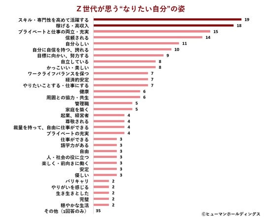 Q3.Z世代の“なりたい自分”は、「スキル・専門性を高めて活躍」「稼げる」「高収入」など、仕事における成長や経済的な安定を求める姿が多数