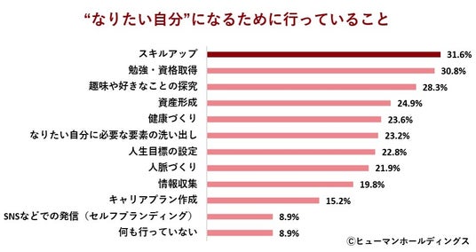 Q2.“なりたい自分”になるために、「スキルアップ」「勉強・資格取得」など自己成長や学びに関する行動が上位に