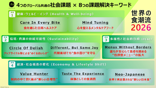 「健康・環境・多様性・経済変化」グローバル共通の社会課題から食の未来を洞察 ― “トレンド理解”を超え“課題解決アクション”につながる「世界の食潮流2026」を発表―