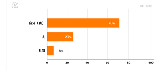家計を「自分(妻)」が管理している人は70%と圧倒的多数という結果になりました。
