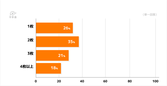 また、保有枚数は「2枚」35%、「3枚」21%、「4枚以上」18%と、2枚以上を使い分ける人が過半数でした。