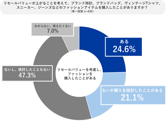 - 1万円以上の買い物で「リセールバリューを考える」人は約半数。日常生活のモノ選びにも投資視点が浸透。