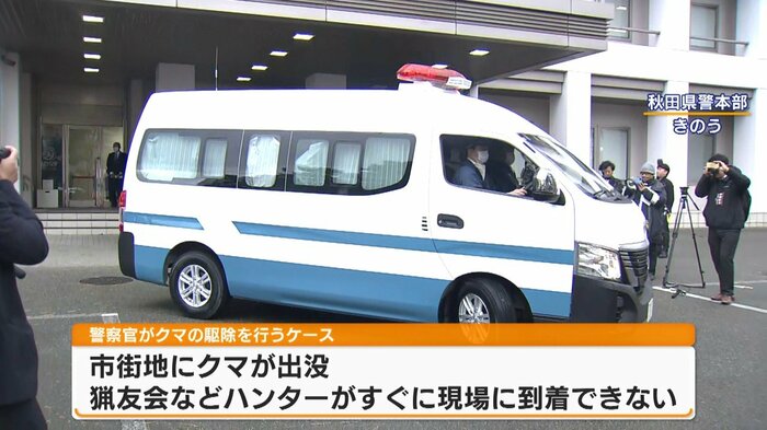 人里に現れるクマに対抗する新たな手段として導入された、警察のライフルによる駆除。