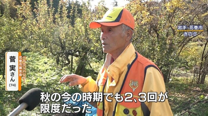 駆除を行ったのは、花巻市の猟友会で50年以上活動を続けるベテランハンター・菅実(かん みのる)さん(74)。