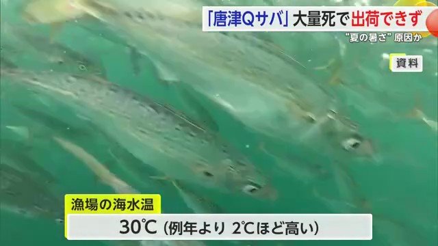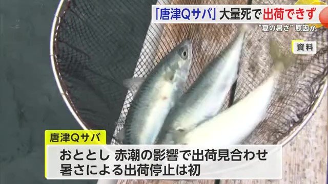 佐賀・唐津市のブランド養殖サバが大量に死んでいるのが見つかった。毎年秋に始まる出荷は当分の間、停止に。夏の記録的な暑さが原因とみられている。異常な高温が続く夏場の養殖環境改善が今後の課題だ。