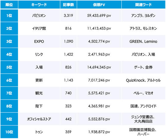 「大阪・関西万博」Qlipperトレンドワードランキング