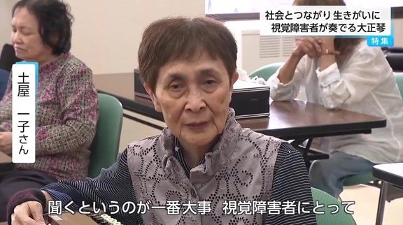 まさに生きがい。大正琴。こういう活動がある、楽しんでいる視覚障害者もいるんだということがまだまだ知られていない。自分ひとりじゃないんですよと言いたい。