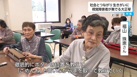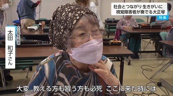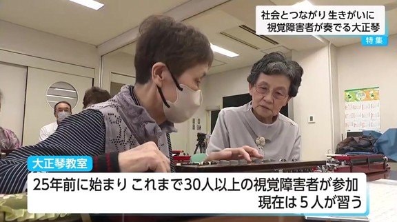 視覚障害者のための大正琴教室は、障害者が社会に踏み出す機会となるだけでなく、健常者が障害への理解を深めるきっかけにもなっていた。
