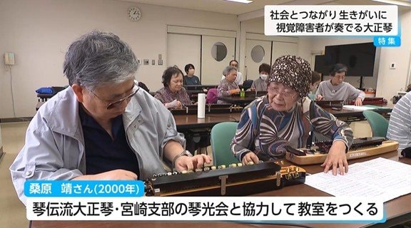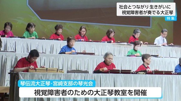 演奏会を主催した琴伝流大正琴・宮崎支部の琴光会では、視覚障害者のための大正琴教室を開講している。