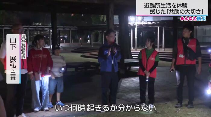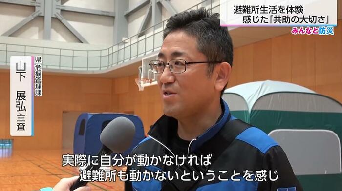 県危機管理局の山下展弘主査は、「いつ何時起きるか分からない。避難所にいても、何があるかわからない、というのをしっかりと頭の片隅においていただければと思います」と、予期せぬ事態への備えの重要性を強調した。
