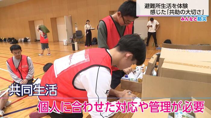 避難所生活の体験イベントは宮崎県が企画し、南九州大学宮崎キャンパスで行われた。災害発生時に開設される避難所での生活を、参加者が運営面も含めて体験できるものだ。