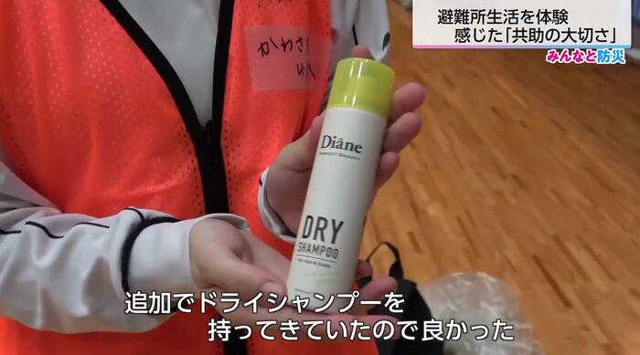 一方、女子高校生は、「水なしでできるシャンプーが支給されたが、髪が長いので足りなかった。ドライシャンプーを多めに持ってきていたので良かった」と、効果を実感していた。