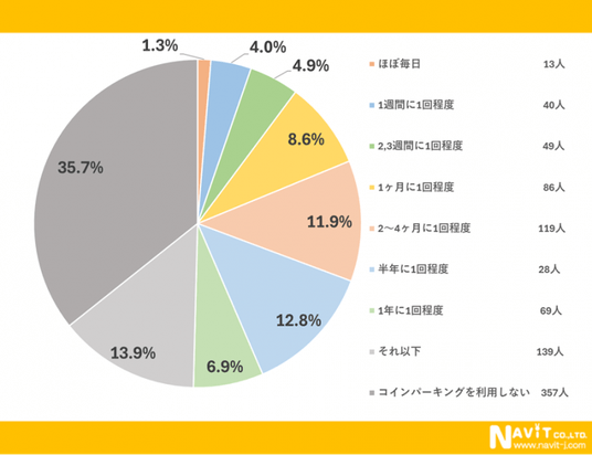 コインパーキングを利用する頻度についてのアンケートでは「2~4ヶ月に1回程度」と回答された人が1番多く11.9%でした。次に多かったのは「1ヶ月に1回程度」で8.5%という結果になりました。