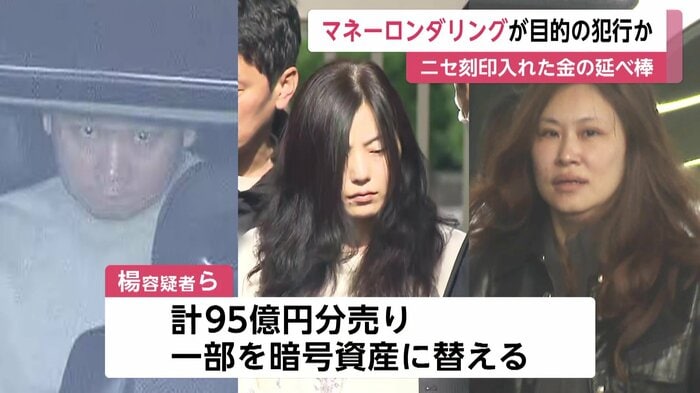 楊容疑者らはこれまでにあわせて95億円分を売りさばき、得た金の一部を暗号資産に変えていることから、警視庁はマネーロンダリング目的の可能性もあるとみて調べている。