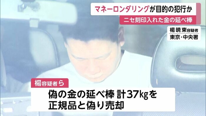 中国籍の楊暁東容疑者(39)ら8人は、偽の刻印が入った金の延べ棒あわせて37kgを正規品と偽って買い取り業者に売却し、約6億円をだまし取るなどした疑いが持たれている。