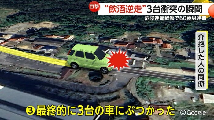 警察によると、逆走車は、片側1車線の国道で3台の車に衝突。
