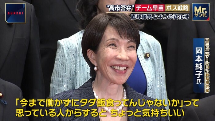 「“チーム早苗”のボス戦略」と私は言ってますが、「皆さん私が働かせますから」って言っているんですね、ボスとして。「今まで働かずにタダ飯食ってんじゃないか」って思ってる人からすると、ちょっと気持ちいい。