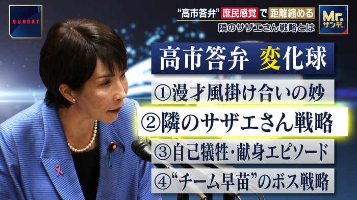 私は“隣のサザエさん戦略”と言うんですが、本当にもう隣にいて、そこにいらっしゃるような。雲の上の天上人でもないし、庶民のことが分かっているっていう。その戦略は、彼女はもう終始一貫してとっている戦略なんですよね。
