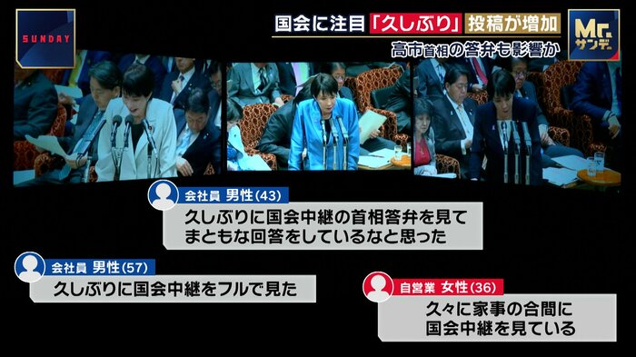 国会中継を「久しぶり」に見ているといった投稿が数多く見られた。