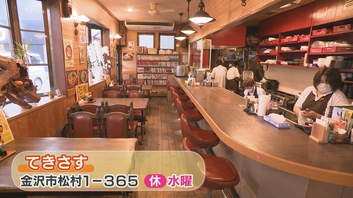 金沢市松村に店を構える洋食店「てきさす」は、11時のオープンと同時にお客さんが訪れる人気店だ。昼時には満席になることも多く、彦摩呂さんが訪れた時も、店内には活気があふれていた。