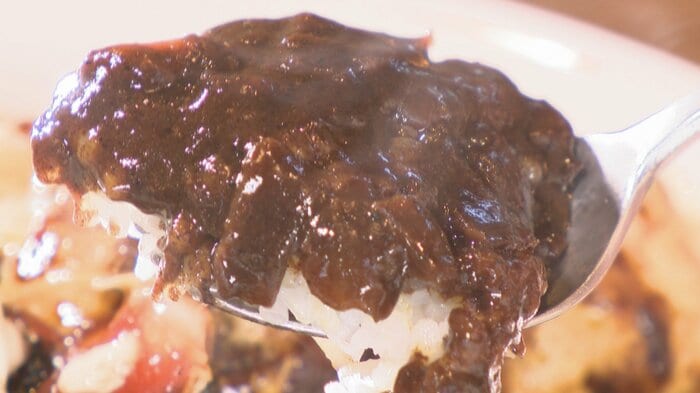 街のインタビューで語った地元の男性は、「お家で食べられない感じの味もするし、具がいっぱい。久しぶりに行ったら美味しいんですけど、やっぱり混んでるじゃないですか」と語る。男性、愛しの一品は「てきさすのスタミナカレー」だという。「結構お肉乗ってて、スタミナ満点な感じがします」と笑顔で話す。