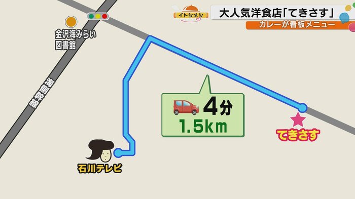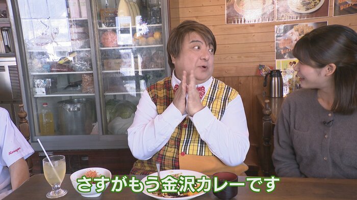 この“てきさす”は石川テレビのすぐそばにあり、社員もよく訪れる店だという。彦摩呂さんが石川テレビの秋末アナウンサーに何を食べるか尋ねると、「ヤサ玉(野菜玉子)カレーを食べてください」と即答。「絶対ヤサ玉」と言い切る姿に「そんだけ美味しいんやったら一度食べてみようか」と興味を示した。