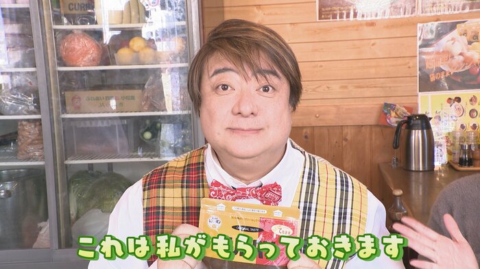 帰り際、秋末アナウンサーが集めているポイントカード。20枚目のポイントカードを彦摩呂さんが受け取り、カレールーと交換。