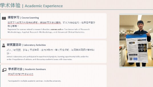 引き続き、博士課程1年の留学生が生化学分野について、Post O-NECUS博士課程4年の留学生が病原ウイルス学分野について、学術研究院医歯薬学域(医)の河合穂高研究准教授が口腔病理学分野について、オウ・ヨウ助教、Post O-NECUS博士課程4年の留学生が口腔形態学分野について紹介しました。また、O-NECUSプログラムの経験をはじめ、研究室ライフ、岡山での暮らし、キャリアパスについても紹介がありました。その後のQ&Aセッションでは、参加学生から語学能力、奨学金、正規課程への進学などに関する質問が寄せられ、活発に質疑応答が行われました。