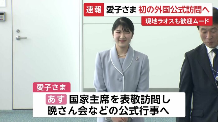 今回の訪問は外交関係樹立70周年を記念したもので、愛子さまは17日夜、首都ビエンチャンに到着される。