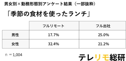 男女別×勤務形態別アンケート結果(一部抜粋)「季節の食材を使ったランチ」