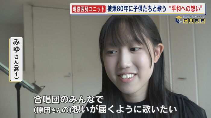 原爆の被害状況や現代の非核化への取り組みなどについても勉強していた高1のみゆさんは「いま日本が、戦争もなく幸せに過ごせているのが、当たり前と思ってはいけないなと。当日は、いろんな世代の方が見に来られると思うので、合唱団のみんなで、原田さんの思いが届くように歌えたらなと思います」と話していた。