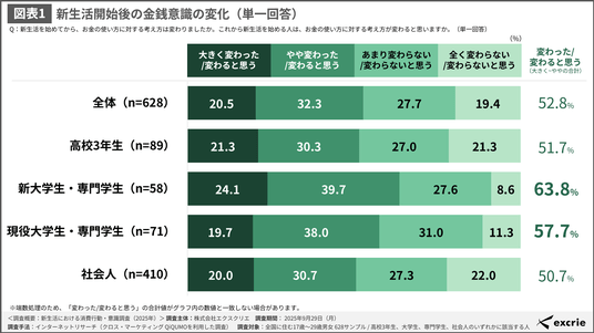 株式会社クロス・マーケティンググループのグループ会社であるソーシャル&セールスプロモーションサービスを展開する株式会社エクスクリエ(本社:東京都新宿区、代表取締役社長:小笠原 亨)は、全国17歳~29歳男女(628人)を対象に「新生活における消費行動・金銭意識に関する調査(2025年)」をWebアンケートにて2025年9月29日(月)に実施しました。