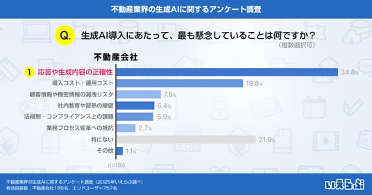 不動産会社の回答と同様、情報の正確性に関する懸念が最多となっています。また、その他の自由回答としては、「押し付けられたり、知らぬ間に契約が成立してしまいそう」「質問に対して求めている回答が得られない」「動作が遅そう」といった意見も挙がりました。