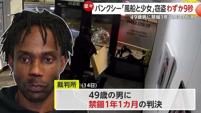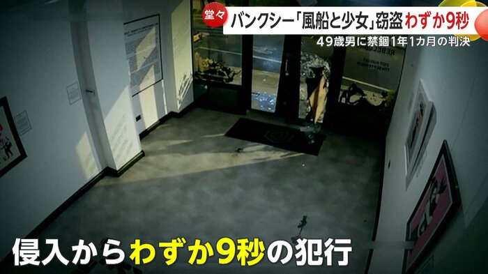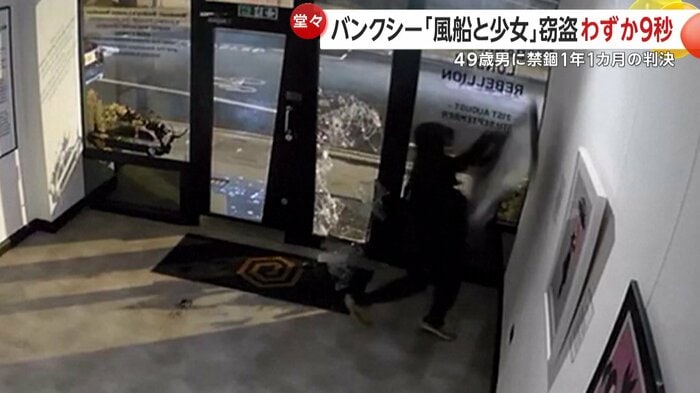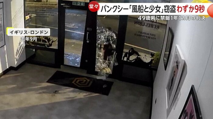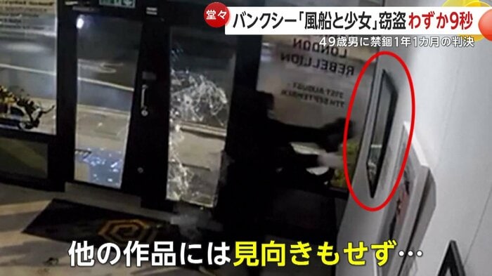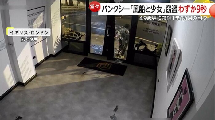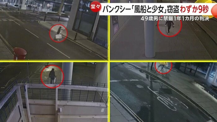 これは、正体不明の覆面アーティスト「バンクシー」の作品を狙った窃盗事件の一部始終を捉えた映像で、イギリス当局により公開された。