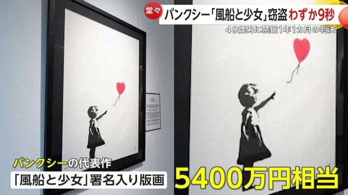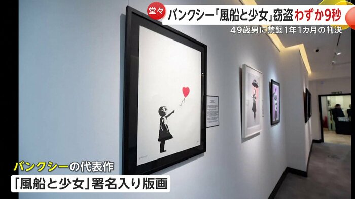 盗まれたのは、バンクシーの代表作のひとつ「風船と少女」の署名入りの版画だ。