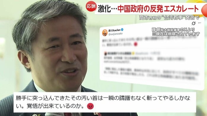 薛剣駐大阪総領事のX投稿(※現在は削除):