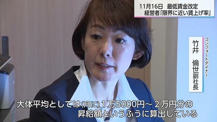 竹井副社長は「中間層がそれ以上、昇給の幅を上げないと自身の仕事に対して納得がいかないのではないか。大体平均としては、(月に)1万5000円から2万円分の昇給額というふうに算出している」と説明した。